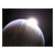 An extrasolar planet with its parent star peeking above its top edge featured with atmosphere.