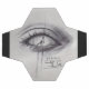 The eye itself is meticulously drawn, with intricate shading that captures the texture of the skin around it, the eyelashes, and the iris. The pupil, however, contains a striking and imaginative element: a small, silhouetted figure of a person reaching upward, as if trapped or struggling within the eye.
