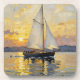 An Impasto Illustration of a Sailboat at Sunset Coaster