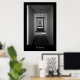 A gallery-style poster print presenting a receding corridor with inlets of light inviting your eye into the distance.