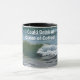 This pretty beach style mug features my original photograph of waves of an ocean, processed with a vector art technique for an illustrated animated style. I placed the words "I Coud Drink an Ocean of Coffee" on it for fun. It has a black colour inside it and on the handle, which may be changed if desired. These are 11-ounce mugs, just the perfect size for your home brewed coffee or tea - or even hot chocolate! It would make a great gift and you can put packets of coffee, tea bags or hot chocolate inside. One other gift idea is putting a little plant in it to make it extra special for your loved one.