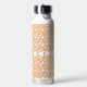 an orange and white wallpaper with a floral design water bottle