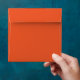 an orange background with a black border envelope