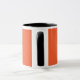 an orange background with a black border mug
