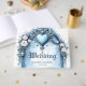 An ornate light blue archway with floral accents, guest book