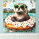An Otter on Vacation in a Floating Doughnut Canvas Print