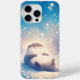 A content otter lies peacefully on the ground beneath a night sky filled with glowing stars and a crescent moon. Soft, dreamy colours of blue and green, combined with the twinkling lights, create a serene and magical atmosphere.