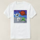 A space man discovers alien life on another planet! An astronaut gets the surprise of his life when he startles a cute, green, crater-dwelling alien on the surface of another world. This colourful, bold, simple design is available for your customisation on a great range of T-shirts in many styles and colours with sizes for kids and adults.