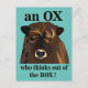 An Ox Who Thinks Out Of The Box Postcard designed by Nisha Prabhu. Featuring cute OX riginal digital illustration with funny typography '' An OX who thinks out of the BOX.'' Send a message that stands out with our 'An Ox Who Thinks Out Of The Box' postcard! This quirky design is perfect for sharing your unique perspective and celebrating creativity. Whether you're sending a note to a friend or just want to add some fun to your collection, this postcard is sure to make a statement. Embrace your individuality and spread some inspiration - get yours today and let your imagination run wild!