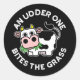 An Udder One Bites The Grass Funny Cow Pun Dark BG Classic Round Sticker