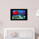 A deep sea diver leaves his red submarine to explore the ocean floor and discovers sunken treasure! This cartoon style illustration features fish, a diver, a submarine, the ocean and sunken treasure in the ultimate underwater adventure! This colourful, bold, simple print design is available for your customisation with a great range of frames in many styles and colours.
