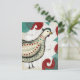An Unserious Chicken featuring a cynical chicken in beige, aqua and red over a white background with swirly red and turquoise accents.