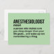 This hilarious anaesthesiologist job definition postcard makes a thoughtful and light-hearted gift for anyone in the medical field. Perfect for anaesthesiology residents, CRNAs, doctors, and med school graduates. Great way to add humour to workplace notice boards or medical student dorm rooms.