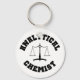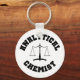Analytical Chemist - white keychain with black collegiate style lettering and antique balance graphic.