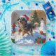 A heartwarming holiday illustration featuring a cheerful dog playing in the snow, wearing a Santa hat and surrounded by colourful gift boxes. In the background, children build a snowman beside a snow-covered Christmas tree, creating a joyful winter wonderland. Perfect for spreading holiday cheer and capturing the magic of Christmas.