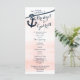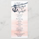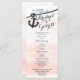 Anchor and rope nautical design printed rack card wedding programs with blush watercolor background and navy blue text.