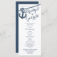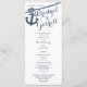 Anchor and rope nautical design printed rack card wedding programs in navy blue text.