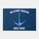Welcome guests in nautical style with this Anchor Boat Name Mat, featuring a watercolor rustic blue anchor and the words Welcome Aboard. Personalize it with your own boat name for a truly unique touch that captures the essence of life on the water. Made to withstand the elements while adding a charming coastal flair to your boat or beach house entryway, this mat is a perfect gift for sailing enthusiasts. Make every entrance feel like you're setting sail on a new adventure! 🌊⛵