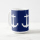 Stylish Anchor Coffee / Tea Mug Cup to add to your drinkware collection. A cool gift / present idea for all who love quality items, positive vibes, custom design unique things, sailing etc. White blue. Change the background colour (blue) to suit your style. Yacht, boat, ship, ocean, swim, fishing, fisherman, marine.