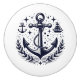 This ceramic cabinet knob is shown in white with a maritime anchor print.