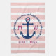 Anchor Heart Pink Stripes Nautical Monogram Logo Tea Towel