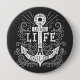 Make a statement with this bold black-and-white anchor button featuring vintage flourishes and the powerful word “LIFE.” Whether worn on a jacket, backpack, or used as a party favour or giveaway, this design captures a rugged, sea-loving spirit in a small but striking way. Perfect for ocean enthusiasts, sailors, or those who live anchored with purpose.