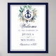 Anchor Monogram Greenery Wreath Wedding Welcome Poster
