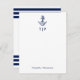 Send your messages with a touch of maritime elegance using these note cards adorned with an anchor monogram and your name on navy blue and white stripes. Perfect for expressing your thoughts with style and sophistication.