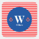 Anchor Nautical Navy Red White Stripes Pattern Square Sticker