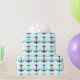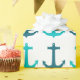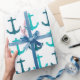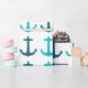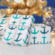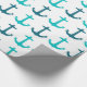 Wrapping paper featuring a pattern of blue coloured anchors. This wrapping paper would be great to wrap beach themed gifts in.