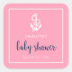 Stylish Nautical Baby Shower sticker featuring an anchor and the words "baby shower" in a stylish blue script against a pink background with a white border that is perfect for a girl baby shower. Use it to seal your envelopes. Check out other baby shower items here https://www.zazzle.com/rosewoodandcitrus/gifts?cg=196748758771183969&rf=238364477188679314