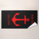 Anchor Red in Black Custom Bath Towel. Simply edit text to personalise!
