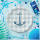 Our sailboat anchor blue gingham check paper plates are perfect for baby showers, birthdays, or summer parties.