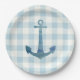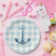 Anchor Sailboat Nautical Blue Gingham Check Paper Plate