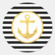 Custom stickers featuring black stripes and gold anchor nautical theme.