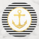 Custom table confetti with black stripes and gold anchor nautical theme.