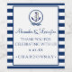 Anchor image with the bride and grooms names personalised on this nautical themed wedding wine bottle label. This wine bottle sticker is personalised with your wedding date, type of wine and "Thank You For Celebrating With Us". Trendy navy blue and white striped pattern background. Customise all colours click "Customise".