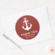 The sticker is made on wonderful paper and had no problem sticking to the bag that I purchased to put it on. I wanted to find a design that would be cute for the bride and groom and this one fit the bill as it has cute "bees" buzzing around and the wedding was taking place in a town called "Bee Cave". The packaging was great and protected the stickers. The website is easy to navigate and there are so many color choices. I had no problem finding a color that the bride was using on everything else selected. The design was adorable and there were many to choose from. You can make the figure as larger or smaller and you can place the photo and writting whereever you want to in the sticker. The printing is fabulous..better than expected.