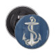 A vintage anchor in cream and white is set against a background of old wood boards tinted cobalt blue to make a great beach themed button bottle opener. Matching items and many other beach designs are available in my Zazzle store.