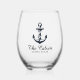 Personalized boat name stemless wine glass, change the text yourself when you order