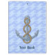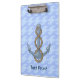 Anchor with rope illustration over waves light blue seamless background. Custom text.