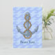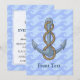 Anchor with rope illustration over waves light blue seamless background. Custom text.