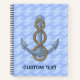 Anchor with rope illustration over waves light blue seamless background. Custom text.