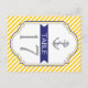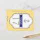 Yellow, white stripes and anchor nautical wedding table number postcard. A stylish striped pattern design with yellow, white diagonal stripes, a grey anchor with a blue heart and rope and your text in a frame with a navy blue banner. Contemporary yet with a vintage look in a sense. You can change background and text colour choosing from over 200 colours from Zazzle colour chart. This classy design is a completely customisable template and is part of a wedding set perfect for a summer wedding.