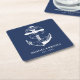 Anchored in Love Nautical Blue Anchor Wedding Square Paper Coaster
