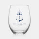Anchored in Love Nautical Blue Anchor Wedding Stemless Wine Glass