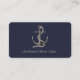 White rope wraps around a realistic looking anchor on this navy blue business card. Text is customisable.