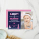 This adorable fill-in-the-blank thank you note matches our popular Sail Away Girl's Nautical Birthday party invitation. This thank you note can be personalised with your child's photo and custom wording. This is a cute way for a young child to say Thank You to party guests!