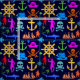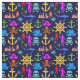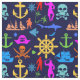 Anchors, Helms, Pirates. Colourful Nautical Patter Fabric
