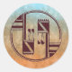 An attractive ancient Acoma pottery design in a deep rust red on a background of distressed Southwest shades.